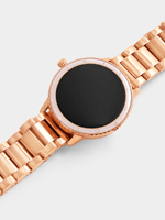 Monitor your fitness while enhancing your daily life with this splash-resistant smart watch featuring a Rose Plated round case, scratch-resistant AMOLED touch display and elegant bracelet strap. Special features include a pedometer, heart rate monitor, blood oxygen measurer, sleep tracking, multisport modes, Bluetooth calling, missed call and message notification, plus wireless charging and up to 10 days of battery life.