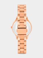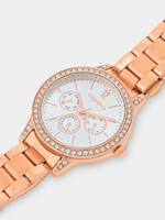 This glamorous Crystal-embellished bracelet watch features a Rose Plated round case and silver toned multi-fashion dial.