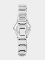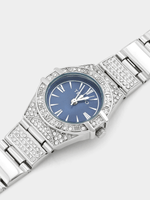 This glamorous Crystal-embellished Silver Plated bracelet watch features a round case and blue Mother Of Pearl dial.