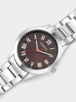 This stylish bracelet watch features a Silver Plated round case with a sleek brown