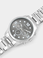 This stylish Silver Plated bracelet watch features a round case and textured green fashion chrono dial.