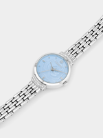 This glamorous Crystal-embellished Silver Plated watch features round case and light blue dial with a rose motif.