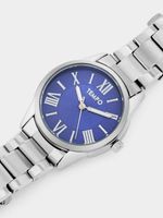 This stylish Silver Plated bracelet watch features a round case and sleek navy dial.
