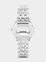 This stylish Silver Plated bracelet watch features round case and sleek teal dial.
