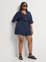 Our Textured Tab Detail Playsuit is effortlessly stylish with its textured lightweight fabric and relaxed fit. Wear it with simple slides or flatform sandals for comfortable yet polished off-duty style.