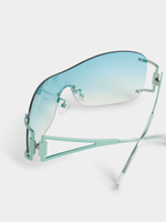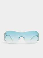 Introducing our chic FIX Blue Frameless Shield Sunglasses. Made from durable plastic, these sunnies offer a trendy look with UV protection. Perfect for adding a stylish flair to any outfit, these sunglasses are a must-have accessory for summer. Enjoy the sun in style with these stylish shades.