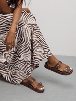 Give your shoe game a fresh update with this flat sandal, these slip in mules are the perfect combo of style and comfort. Complete the look with your existing wardrobe pieces.