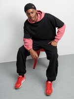 Elevate your athleisure game with our men's black baggy cuffed joggers. Crafted from cozy brushed fleece, these joggers feature an oversized fit for maximum comfort. Perfect for lounging or running errands.