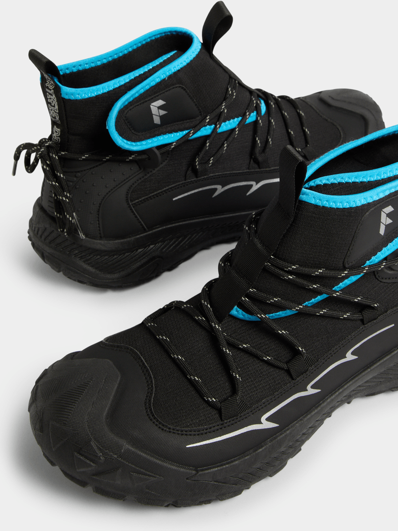 step up your sneaker game with our men's black & blue lace up high top sneaker. Crafted with high-quality materials for durability and comfort. A versatile style to elevate any outfit, Lace-up closure for a secure fit, perfect for any casual setting. Stand out from the crowd in these stylish kicks.