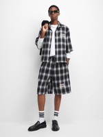 Elevate your style with our black check co-ord graphic shorts. Made from woven fabric for ultimate comfort. The perfect addition to your wardrobe. Match it with the co-ord shirt for a full fit that hits different.