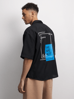 Elevate your style with this black shirt. Featuring a woven fabric, botton down detail and short sleeves this shirt is a must-have for any wardrobe. Designed with comfort and style in mind, it's the perfect staple piece for any occasion.