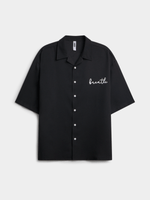 Elevate your style with this black shirt. Featuring a woven fabric, botton down detail and short sleeves this shirt is a must-have for any wardrobe. Designed with comfort and style in mind, it's the perfect staple piece for any occasion.