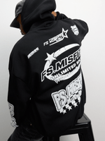 Stay warm and stylish with The FIX Motosport Graphic Hoody in black. Made from brushed fleece, this hoody features an oversized fit for ultimate comfort. Perfect for everyday wear, this hoody is a must-have in your wardrobe. Designed with quality and style in mind, it's sure to become your new favorite piece.
