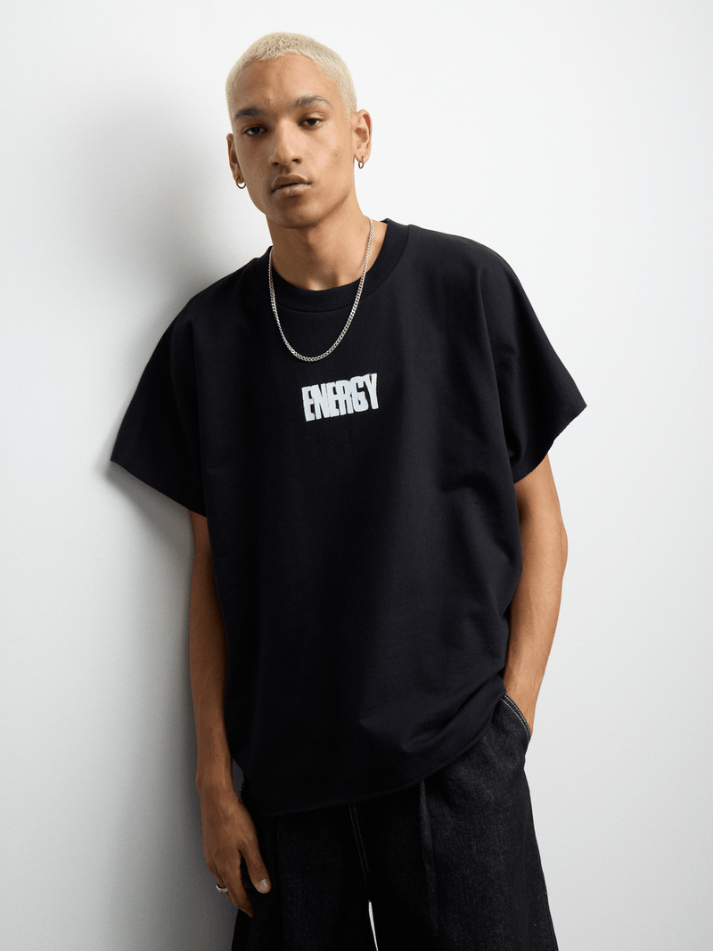Introducing our trendy black oversized print vest, perfect for adding a cool vibe to your wardrobe. Made of cozy fleece and cotton blend for ultimate comfort. Features a stylish print and fits oversized for a relaxed look. Versatile and easy to style.