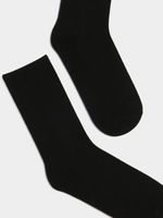 Introducing our Black Rib Socks, the perfect addition to your sock collection. Made with a cozy poly-cotton blend, these socks are comfortable for all-day wear. The ribbed design adds a touch of style to any outfit. Treat your feet to these versatile and durable socks.