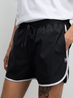 Elevate your casual style with our black taslon runner shorts. Crafted from comfortable polyester fabric, these shorts feature a modern design that's perfect for everyday wear. Pair it with a oversized t-shirt and kicks for a dope summer look!