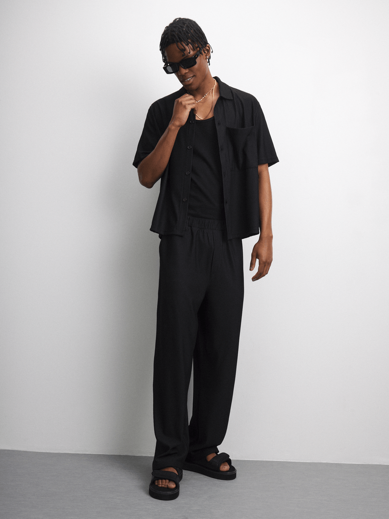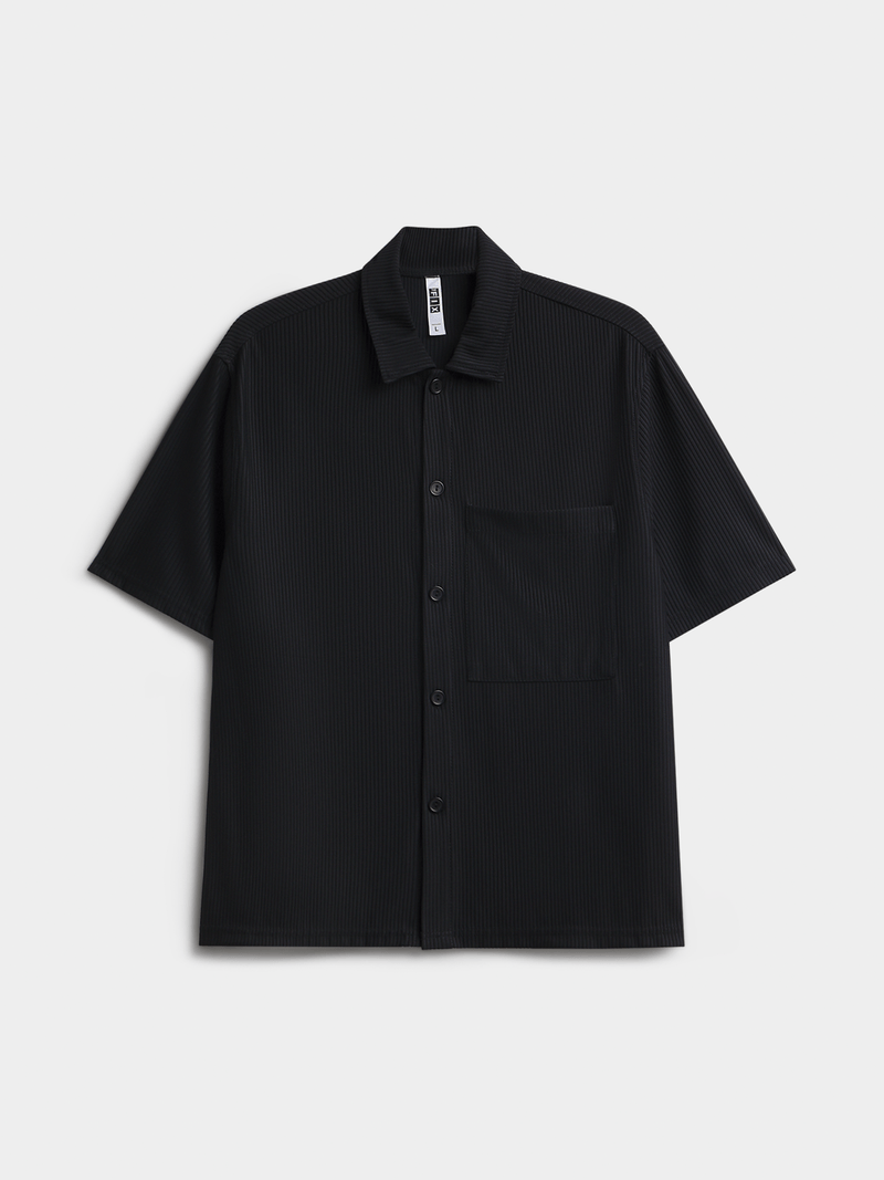 This men’s black ottoman shirt is all about texture and flex. Featuring a ribbed ottoman fabric, boxy fit & short sleeves. Throw it on with cargos and fresh kicks for everyday street drip, or layer it under a jacket for a fiyah flex.