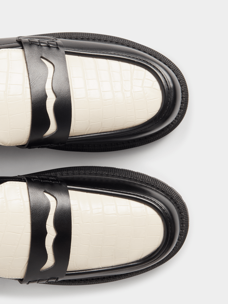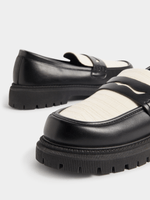 Step up your shoe game with the FIX black & white mono loafer. Made from durable PU material, this stylish loafer is perfect for everyday wear. Enjoy the comfort and style of this versatile shoe that pairs well with any outfit.