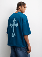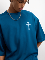Step up your style game with this blue graphic top from FIX. Made from breathable mesh fabric, this oversized tee is perfect for making a statement. It features a unique design that will set you apart from the crowd. Perfect for everyday wear, this top is a must-have for your wardrobe.