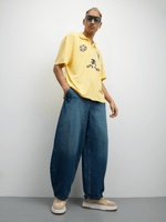 Introducing our Blue Washed Barrel Jeans crafted from 100% cotton denim. With a comfortable fit and stylish design, these jeans are perfect for any casual occasion. Upgrade your denim collection with these versatile jeans.