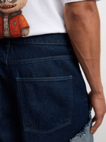 Elevate your casual look with our men's denim bermuda shorts in a trendy blue wash. Featuring a stylish star frayed design, these shorts are perfect for everyday wear. Made from high-quality denim.