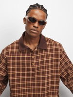 Elevate your style with The FIX Men's Brown Check Golfer.This sweat top features a trendy check design. it's a versatile addition to your wardrobe.