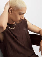 Get your drip right with this brown knit vest. Featuring a textured fabric, sleeveless & round neck design that'll keep you comfy, cool, and lookin' straight-up fire, this vest is made for flexing.