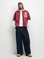 Get that sporty-cool vibe with The FIX burgundy co-ord baseball shirt. This shirt has a stylish stripe detail. Perfect for casual days or hitting the batting cages. Pair with the matching shorts.
