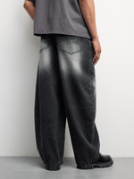 Introducing our stylish charcoal wash baggy jeans. Featuring a charcoal wash denim fabric, a barrel fit for a relaxed all-day wear. Pair them with a oversized hoodie and some fresh kicks, whateva floats ya' boat my guy.