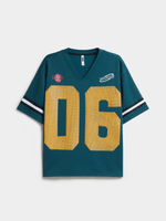 Complete yo' look with this must-have green graphic tee. Featuring a fleece fabric, bold front print, short sleeves & oversized fit. Pair with your fave bottoms and sneakers for a dope look.