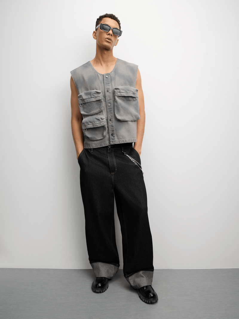 Complete yo' look with this must have gilet. Featuring a denim fabric,multiple pockets for functionality, sleeveless and button design. Pair with your fave bottoms and sneakers for a dope look.Made from high-quality denim fabric for ultimate comfort.