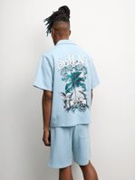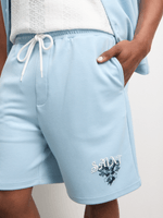 Upgrade your summer wardrobe with the light blue printed resort shorts. Made from high-quality knit fabric, these shorts offer a comfortable regular fit. Perfect for any casual outing, they are designed for easy styling. Enjoy the versatility and style of these must-have shorts. These shorts are a great addition to your collection.