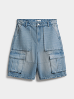 These utility shorts don’t play. Featuring a light wash denim fabric, multiple pockets and baggy fit. Rock ‘em low with a vest or hoodie for that ultimate bad boy flex. It’s giving cargo energy but make it denim.