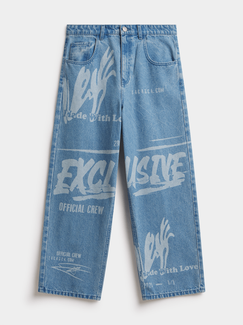 Introducing our stylish light wash baggy jeans. Featuring a denim fabric, with a fun print for a trendy look & a relaxed fit for all-day wear. Pair them with your favorite tops for a versatile wardrobe staple.