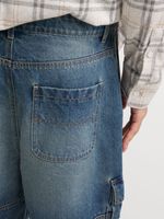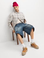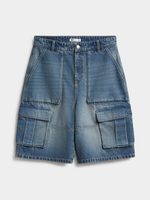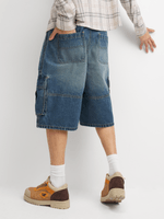 These utility shorts don’t play. Featuring a medium wash denim fabric, multiple pockets and baggy fit. Rock ‘em low with a vest or hoodie for that ultimate bad boy flex. It’s giving cargo energy but make it denim.