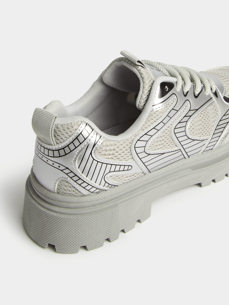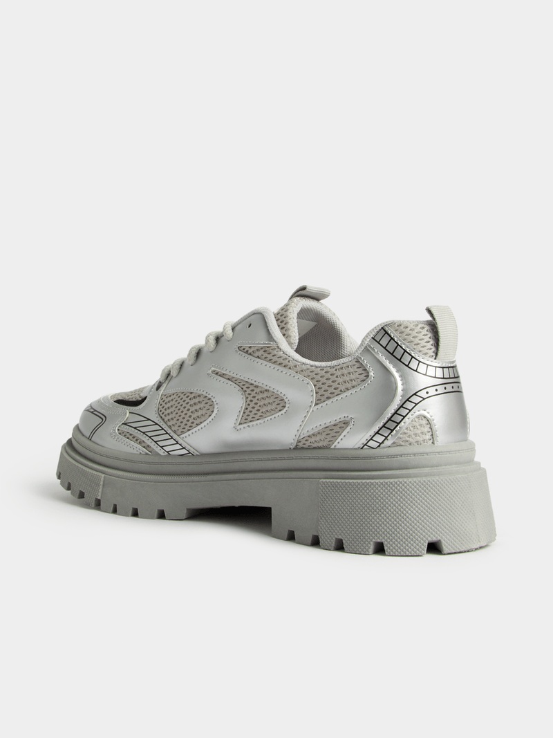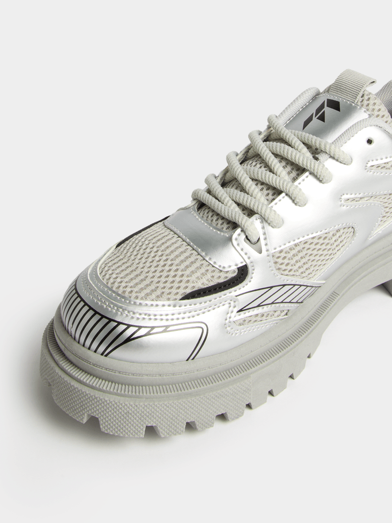 Elevate your style with this metallic silver chunky manstyle. Made for those who love to stand out, this statement piece adds a touch of edgy flair to any outfit. Crafted with attention to detail, it's the perfect accessory to complete your look. Get your hands on a pair today!