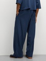 Stay cozy in style with these navy fleece pinstripe barrel joggers. Made with soft fleece fabric for ultimate comfort. Features a regular fit for easy movement. Perfect for lounging or running errands. Designed to keep you warm and stylish all day long. Grab a pair and elevate your athleisure game.
