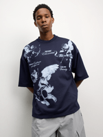 Add some fun to your wardrobe with our navy multi cupid tee. Made from cozy fleece fabric, this oversized tee features a playful cupid design. Perfect for a relaxed and stylish look.