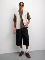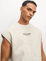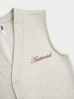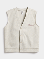 Introducing the FIX oatmeal cardigan. Made from cozy brushed fleece, this sleeveless style is perfect for layering. With a relaxed fit, this cardigan is versatile and easy to style. Enjoy the comfort and warmth of this must-have addition to your wardrobe.