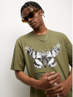 Introducing our olive moth graphic top, featuring a single jersey fabric for ultimate comfort. Perfect for everyday wear, this top features a unique design that adds a touch of personality to your look. It's a must-have for your wardrobe!