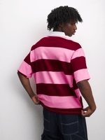 Elevate your style with our FIX rugby golfer in pink & burgundy stripes. Crafted from cozy fleece fabric for comfort. Features a classic design that's perfect for any casual outing. Dress it up or down effortlessly for a versatile wardrobe staple.