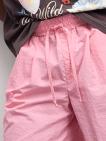 Introducing our Pink Taslon Pleated Volley Shorts, designed for comfort and style. Made with durable nylon fabric that's perfect for everyday wear. Features include a pleated design and an adjustable waist for the perfect fit. Take your casual look to the next level with these versatile shorts.
