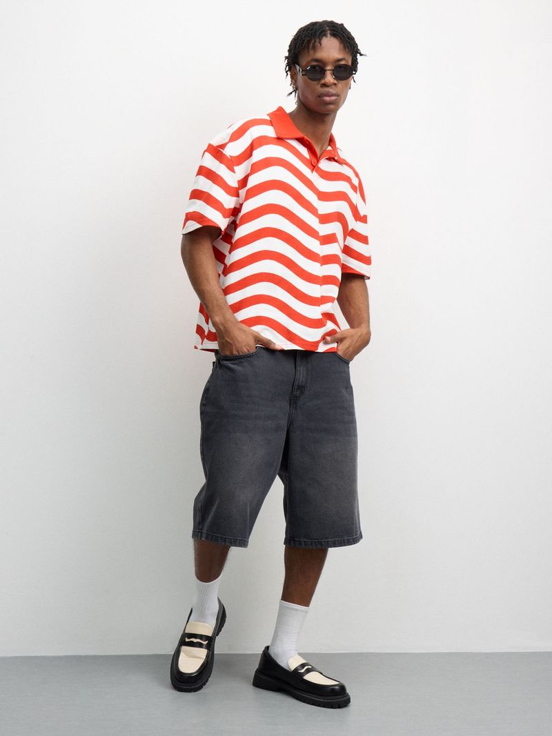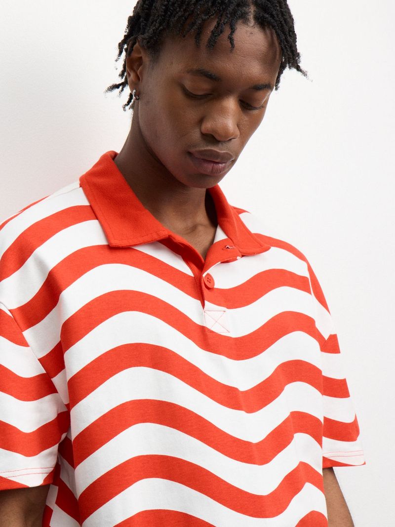 Get the ultimate casual look with our Red Wavy Stripe Boxy Golfer. Made from comfortable cotton single jersey fabric, this golfer features a striking wavy stripe design. With a regular fit, it's perfect for everyday wear.