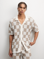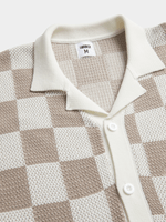Keep it cool and coordinated in this stone check knit shirt, crafted from soft, breathable 100% cotton. With its clean design and relaxed fit, it’s perfect for laid-back days or matching with the full co-ord set for effortless style.