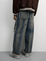 Elevate your casual style with our Men's Tinted Wash Baggy Denim Jeans. Featuring frayed panels for a trendy edge. Made from high-quality denim for durability.