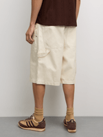 Our white denim carpenter bermuda shorts are perfect for a laid-back summer look. Made from durable denim and cotton blend, these shorts feature a relaxed fit. These shorts are designed for comfort and style. Ideal for casual outings or beach days.