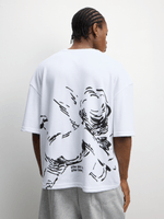Introducing our men's white top with a playful cupid back print. Made from cozy fleece and polyester blend. Perfect for everyday wear. Back view cupid print adds a fun touch. Comfortable fabric for all-day wear.