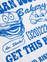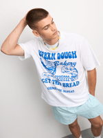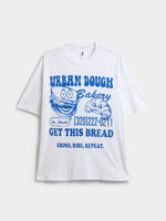 Get ready to stand out in style with our urban dough graphic top. Made from comfortable single jersey cotton, this top is perfect for everyday wear. Designed for a relaxed fit, it features a crisp white color that's easy to pair with any outfit. Show off your unique style with this versatile wardrobe staple.