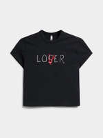 Channel your inner fan & get ready to level up with this must-have IT graphic baby tee. Featuring a cotton lycra fabric with a front print and a crop fit. Pair with your fave bottoms and sneakers for a dope look.