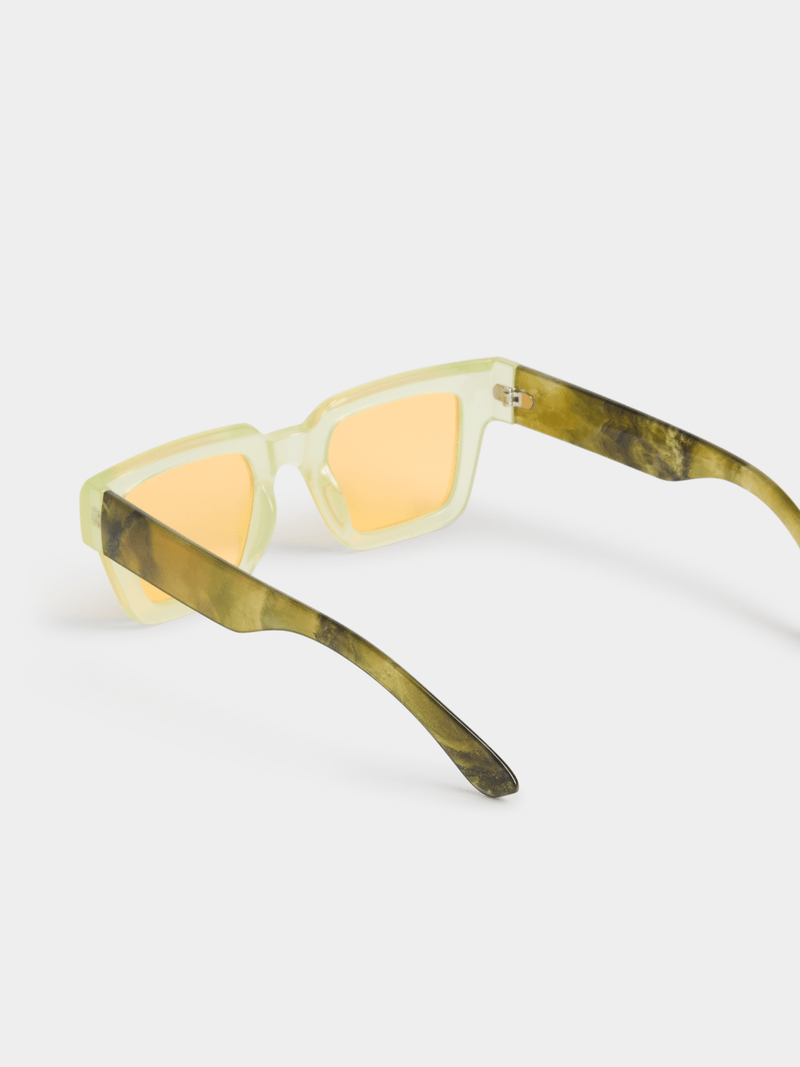Stand out in style with our unisex green and yellow square lens sunglasses. Made from high-quality plastic, these sunglasses offer both UV protection and a trendy look. Perfect for any sunny day adventure, these shades are a must-have accessory.